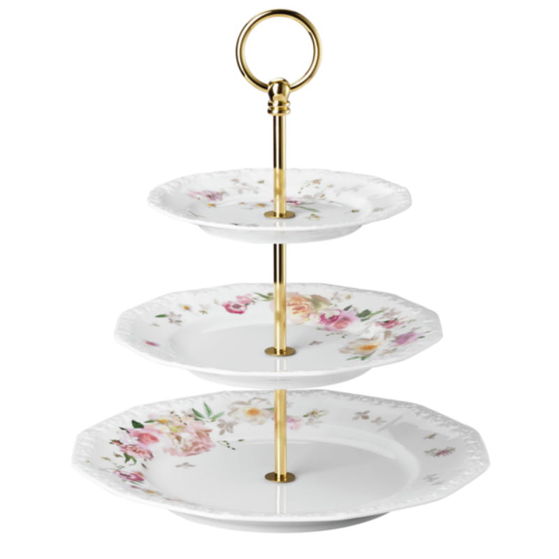 Etażerka z kultowej kolekcji Maria Róża marki Rosenthal to idealny sposób na efektowne podanie ciast, owoców i drobnych słodkości. Doskonała na świąteczny stół, przyjęcia i wyjątkowe okazje – doda uroku każdej aranżacji i będzie pięknym elementem kolekcjonerskim.To połączenie funkcjonalności i ponadczasowego piękna w najlepszym wydaniu Rosenthal.