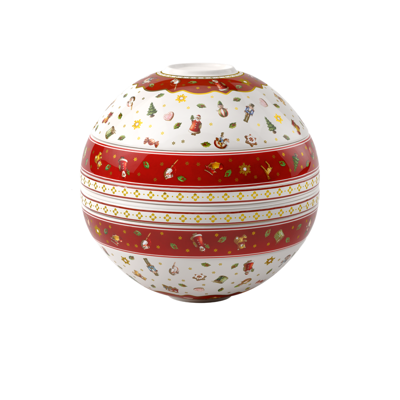 Całość tworzy oryginalną, designerską kulę – ikoniczną formę La Boule, łączącą estetykę i funkcjonalność. Kolekcja Toy’s Delight przenosi w magiczny, świąteczny nastrój dzięki uroczym motywom zabawek: Mikołaja, misia, lokomotywy czy skarpety na prezenty. Połączenie klasycznych barw Bożego Narodzenia – czerwieni, zieleni i bieli – sprawi, że Twój stół nabierze wyjątkowego, ciepłego charakteru.