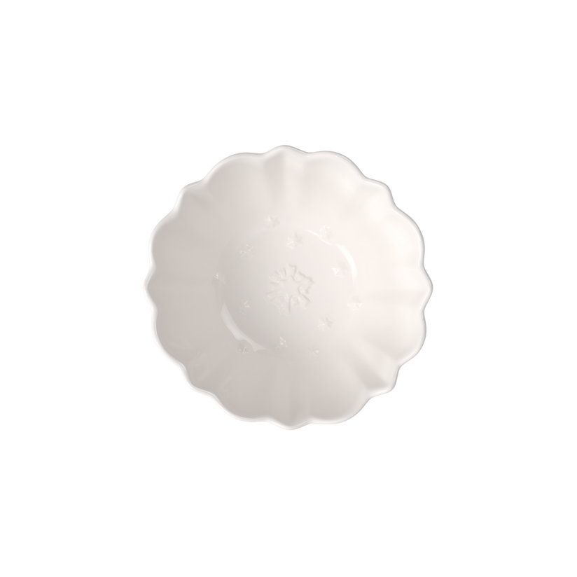 Miseczka wykonana z porcelany premium zachwyca pofalowanym brzegiem oraz wypukłymi, dekoracyjnymi elementami, które przywodzą na myśl przyjemną, świąteczną atmosferę — motywy choinek, gwiazdek i prezentów subtelnie zdobią jego powierzchnię, tworząc efektowną kompozycję. Klasyczna forma i ponadczasowy design sprawiają że doskonale komponuje się zarówno z czarnymi elementami z kolekcji Manufacture Rock jak , Toy's Delight jak i z prostą biała zastawą.Idealny do serwowania dań głównych podczas uroczystych spotkań ,dodaje stołowi elegancji i odświętnego charakteru.