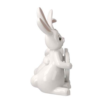 Bialy kolor dodaje elegancji . Figurki roześmianych zajączków wnoszą powiew wiosennej radości i są cudowną dekoracją nie tylko w okresie Wielkanocy .