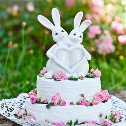 Cudowna królicza para z sercem , pełna dobrej energii wywołuje uśmiech na każdej twarzy . Figurka może być pięknym prezentem dla zakochanej pary z okazji ślubu