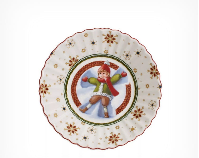 Salaterka mała porcelanowa z kolekcji Toy’s Fantasy od Villeroy & Boch to wyjątkowy element świątecznej zastawy. Dekorowana klasycznymi bożonarodzeniowymi barwami oraz uroczym motywem Dziecka na śniegu, doskonale podkreśli magiczny klimat świąt.