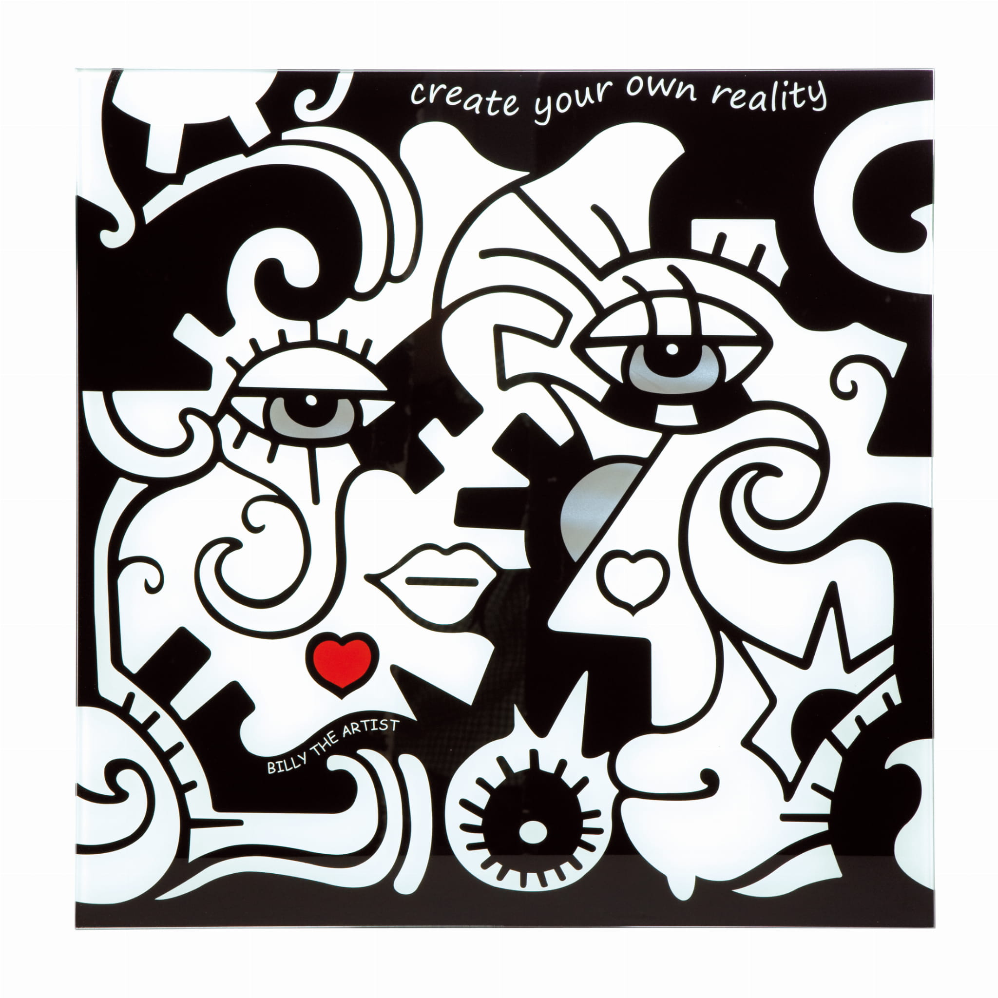 Nowoczesna tablica magnetyczna wykonana ze szkła hartowanego, ozdobiona unikalnym wzorem autorstwa Billy’ego the Artist. Projekt „Two in One” łączy ekspresyjne linie, kontrastowe barwy i geometryczne kształty, tworząc energetyczną i inspirującą kompozycję.