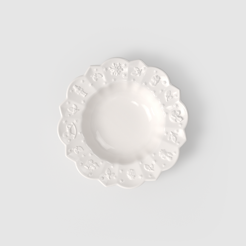 Elegancki talerz głęboki z kolekcji „Toy’s Delight Royal Classic” marki Villeroy & Boch to wyjątkowy element świątecznej zastawy stołowej, który łączy elegancję z nostalgicznym urokiem bożonarodzeniowych tradycji.