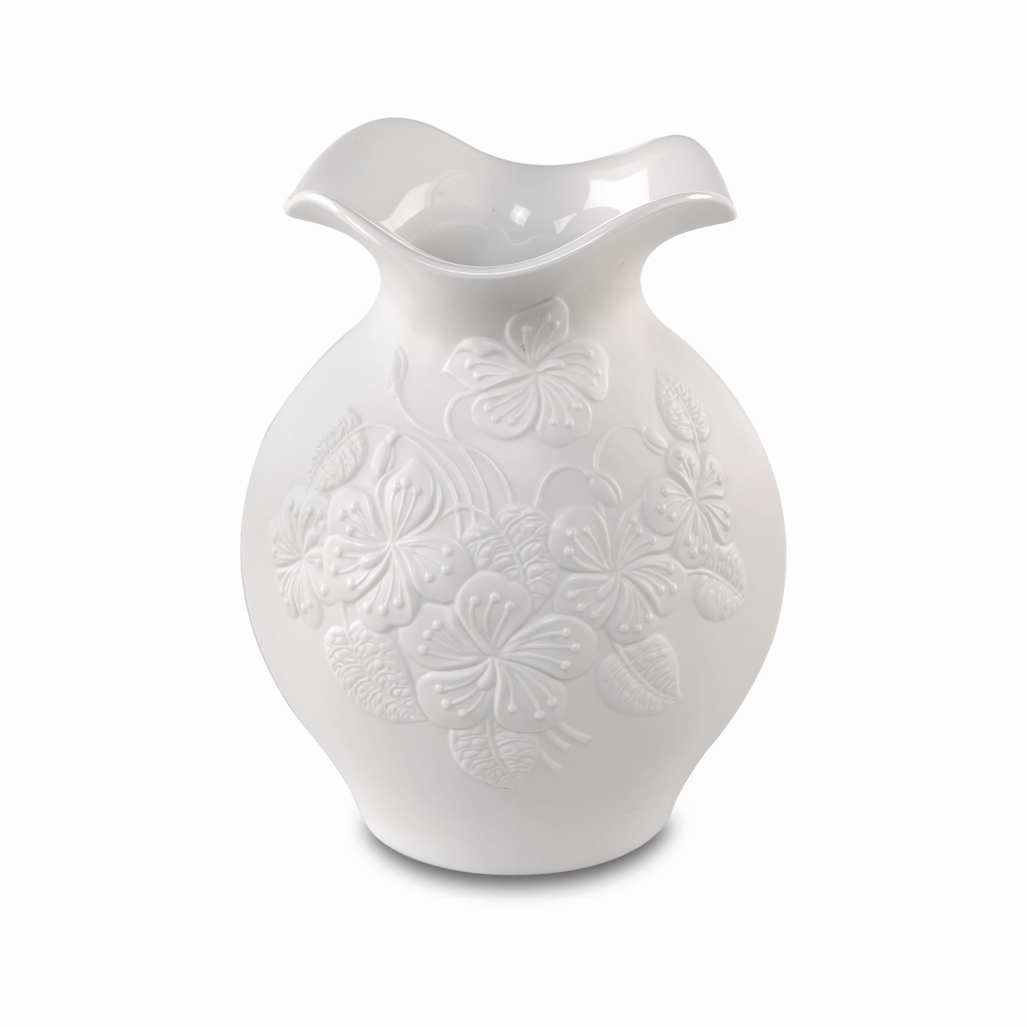 Wazon 16 cm Floralie od Kaiser to subtelna i elegancka dekoracja, która zachwyca delikatnym, kwiatowym wzornictwem. Wykonany z wysokiej jakości biskwitowej porcelany (nieszkliwionej), posiada matową, aksamitną powierzchnię podkreślającą jego wyjątkowy charakter.