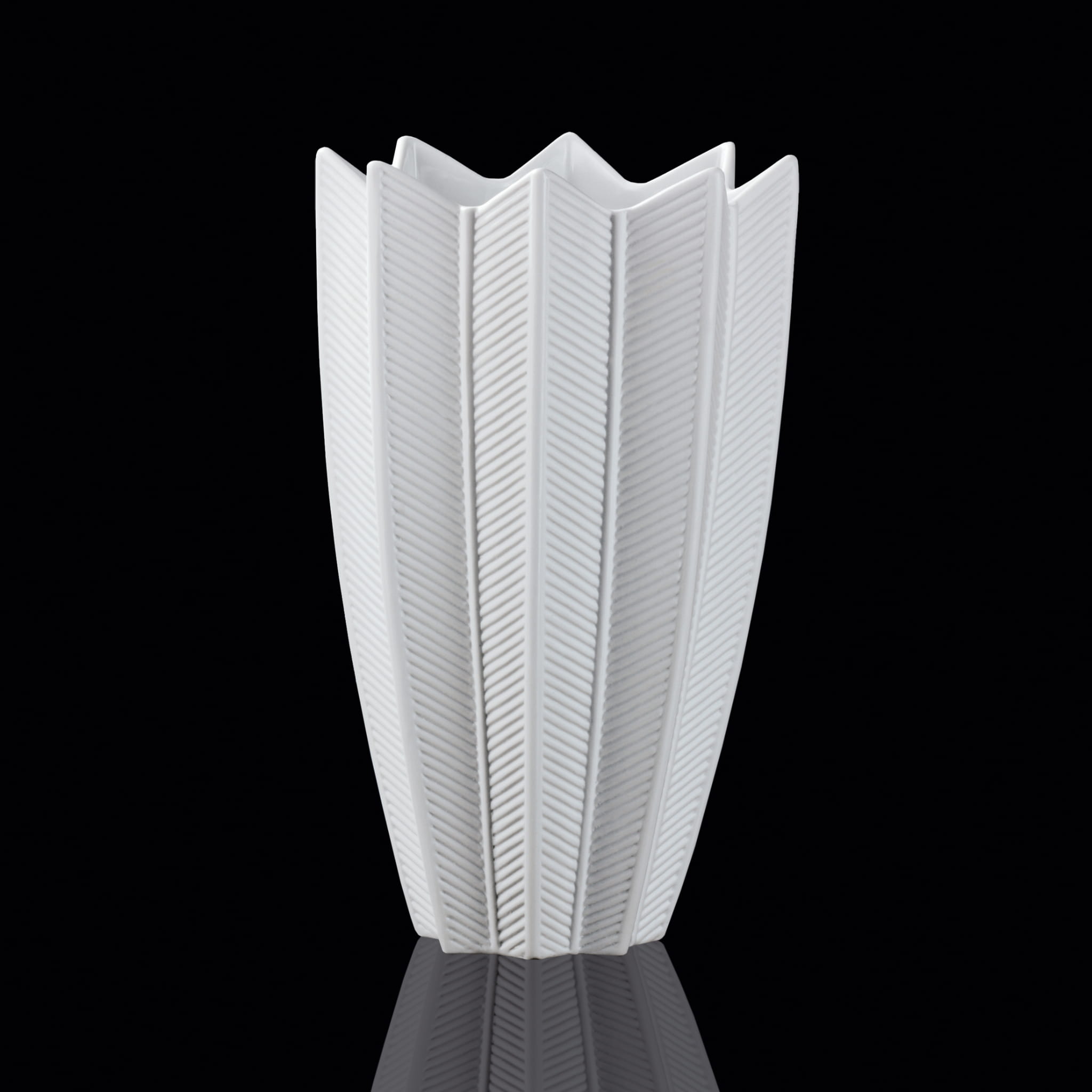 Wazon 20 cm Coconut Leaf od Kaiser to nowoczesna dekoracja o subtelnym, naturalnym charakterze. Wykonany z wysokiej jakości porcelany biskwitowej (nieszkliwionej), zachwyca matową, aksamitną powierzchnią oraz minimalistycznym designem.