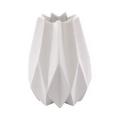 Wazon wykonany z wysokiej jakości porcelany zachwyca precyzją wykonania i gładką, aksamitną powierzchnią, która podkreśla geometryczne linie i nadaje produktowi wyjątkowej głębi. Wysokość 21,5 cm sprawia, że wazon doskonale prezentuje się zarówno jako samodzielna dekoracja, jak i z bukietem świeżych kwiatów lub gałązek.