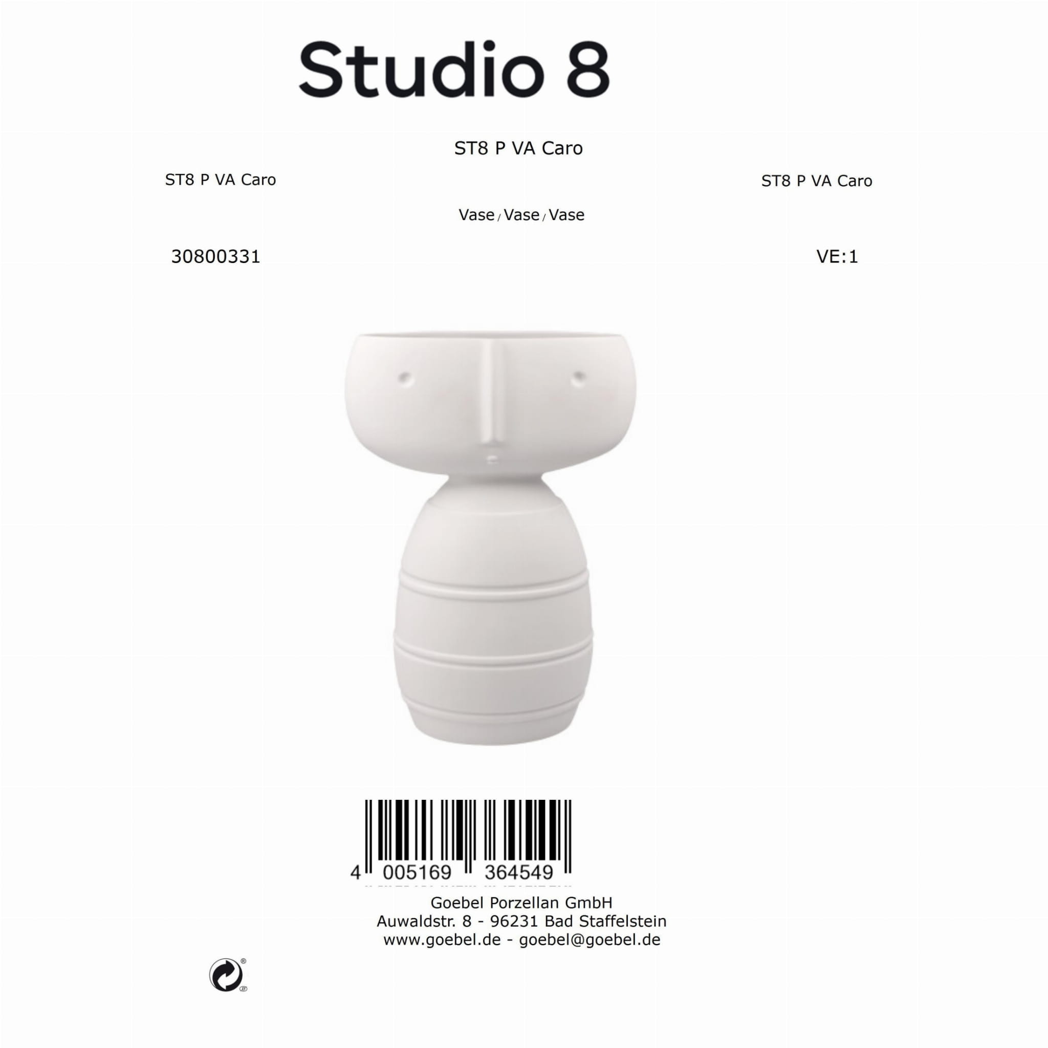 Studio 8 to ekskluzywna gama produktów wykonanych z wysokiej jakości porcelany, w której design Goebla nabiera nowego wymiaru. Kolekcja inspiruje perfekcyjnym kunsztem wykonania i dbałością o szczegóły. Projektowane przedmioty prezentują się w kolorowej powściągliwości i poprzez silną ekspresję form – ponadczasową, elegancką, przejrzystą, subtelną i mocną jednocześnie. Studio 8, Goebel to reprodukcje dzieł sztuki i kolorowego krajobrazu, konsekwentny krok w nowe obszary dostosowane do obecnych czasów.