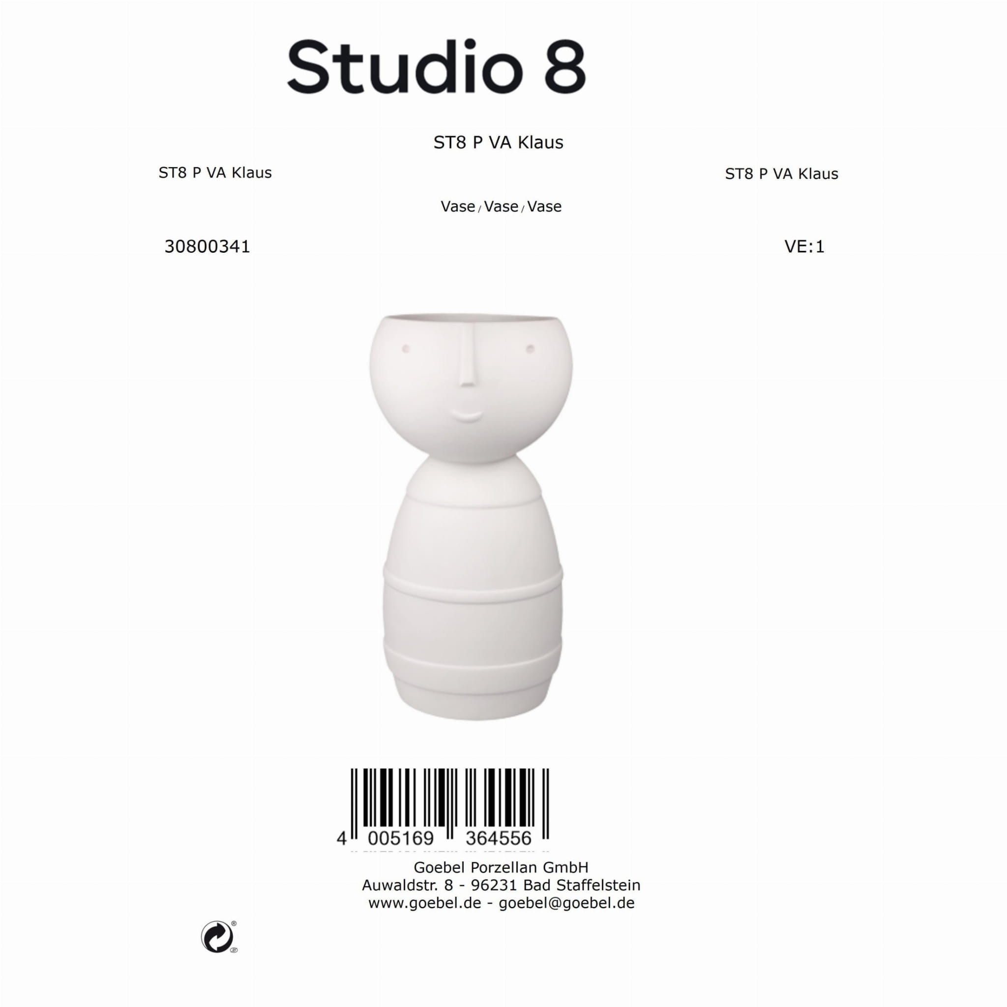 Wazon 30 cm Klaus - Studio 8 od Goebel to nowoczesna dekoracja o artystycznym charakterze, inspirowana ponadczasowym motywem wazonów z ludzką twarzą. Ten klasyczny motyw, znany od tysięcy lat, został tu przedstawiony w minimalistycznej, współczesnej interpretacji.