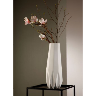 Wazon wykonany z wysokiej jakości porcelany zachwyca precyzją wykonania i gładką, aksamitną powierzchnią, która podkreśla geometryczne linie i nadaje produktowi wyjątkowej głębi. Wysokość 41 cm sprawia, że wazon doskonale prezentuje się zarówno jako samodzielna dekoracja, jak i z bukietem świeżych kwiatów lub gałązek.