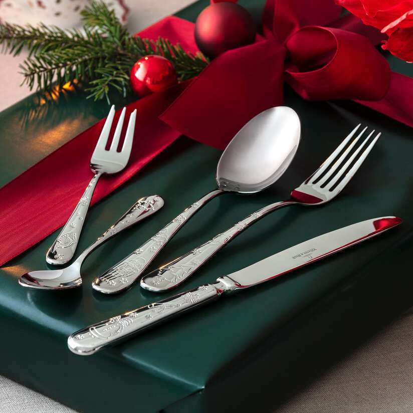 Delikatne, bożonarodzeniowe grawerunki inspirowane kolekcją Toy’s Delight dodają im wyjątkowego uroku i wprowadzają ciepłą, świąteczną atmosferę podczas wspólnych posiłków.Zestaw zawiera wszystkie niezbędne elementy do serwowania posiłków i idealnie sprawdzi się zarówno na co dzień, jak i od święta.